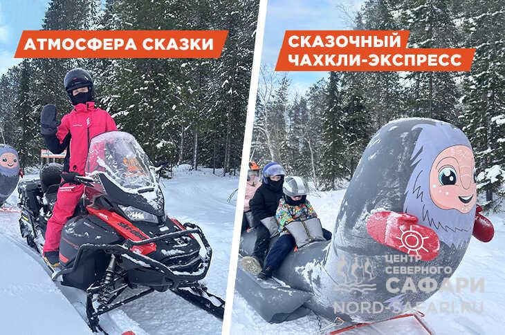 Катание на сказочном чахкли-экспрессе по волшебным местам — специально для семейных прогулок мы разработали этот тур. Он входит в программу зимнего парка развлечений «Деревня чахкли» на базе отдыха «Лесная».