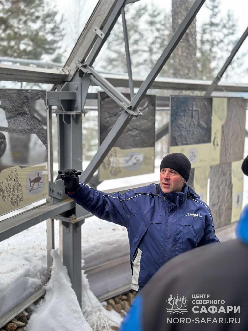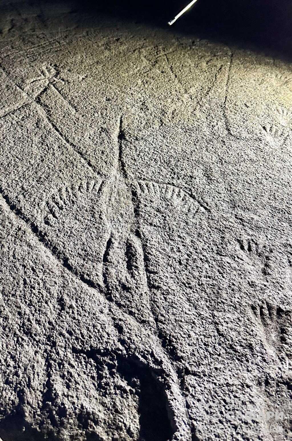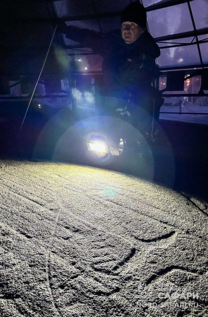 - 10:30 — снегоходное сафари на Канозерские петроглифы, экскурсия. Именно здесь вы прочувствуете связь времён. Предки современных финно-угорских народов оставили на камнях свои рисунки более 6 тысяч лет назад. Через века первобытные люди рассказывают нам о своей жизни: об охоте, любви, добрых и злых силах. Подробнее о петроглифах.
