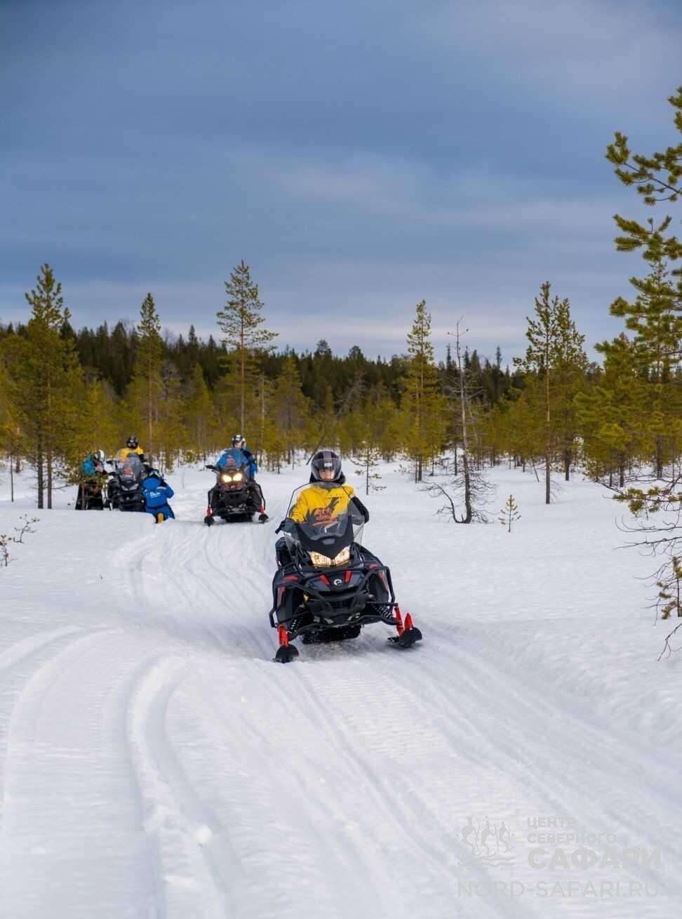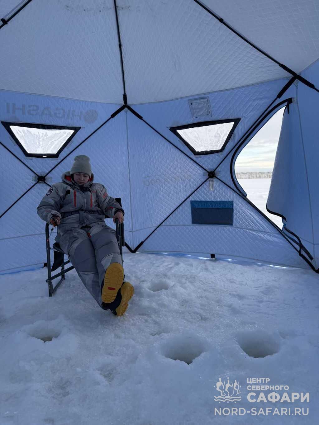 - 10:00 — снегоходное сафари на озёрную рыбалку.