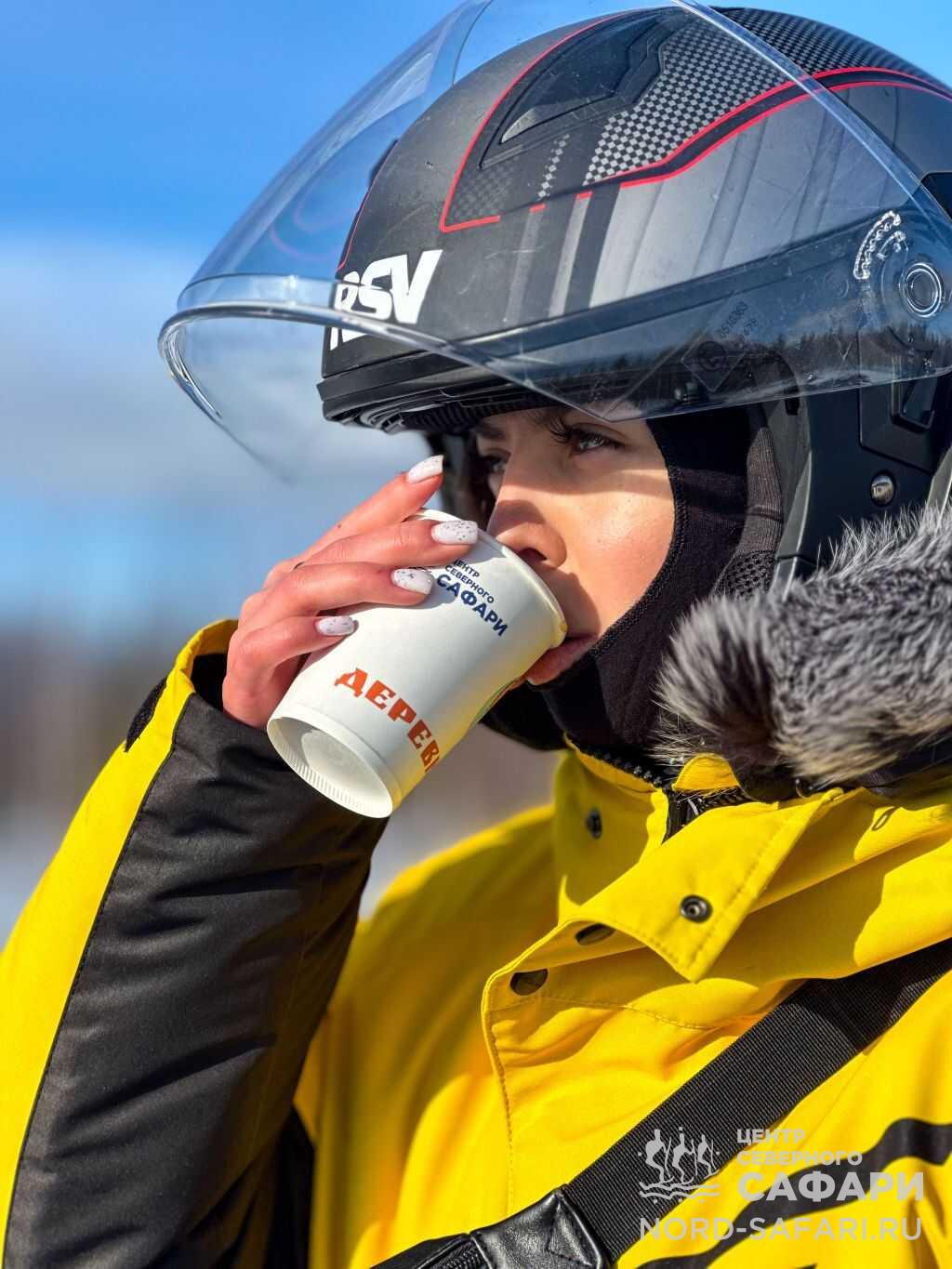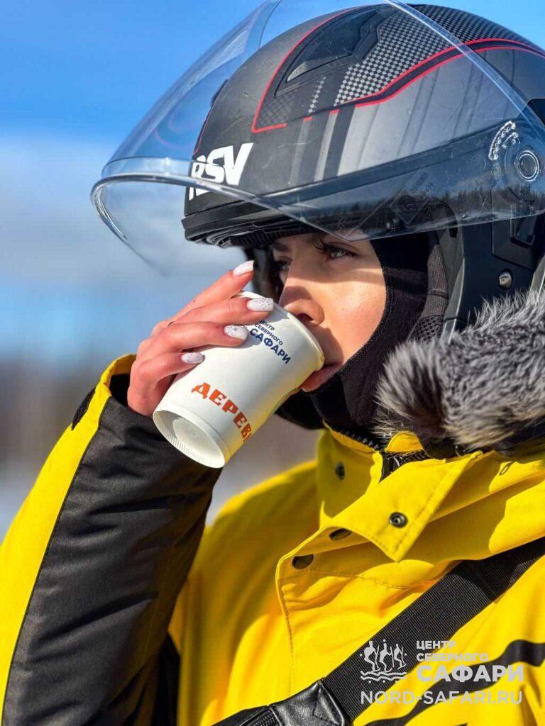 - В дороге предусмотрено несколько остановок. На одной из них среди бескрайних снегов и лесов вы согреетесь ароматным таёжным чаем, приготовленным по особенному рецепту.