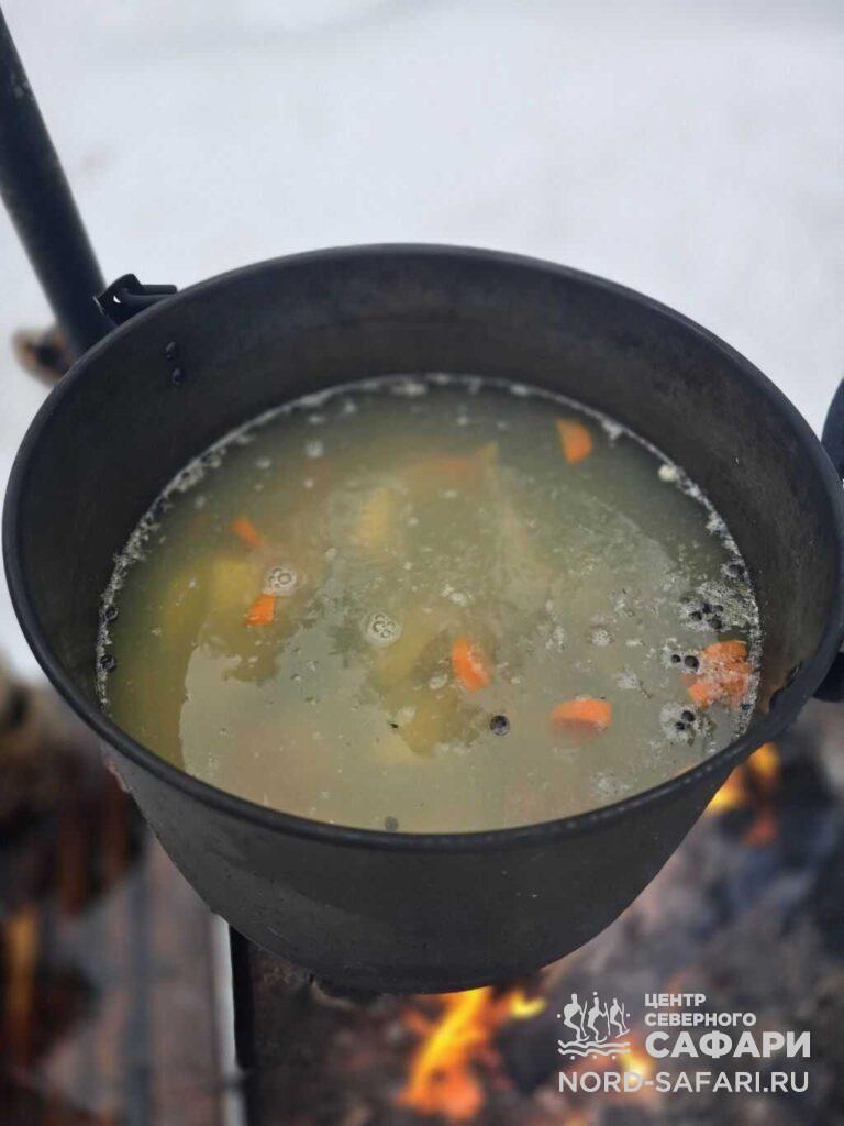 - 13:00 — обед у костра. Ваш улов станет основой наваристой ухи, приготовленной прямо на открытом огне. Особую пикантность блюду придадут сорта местной благородной рыбы.