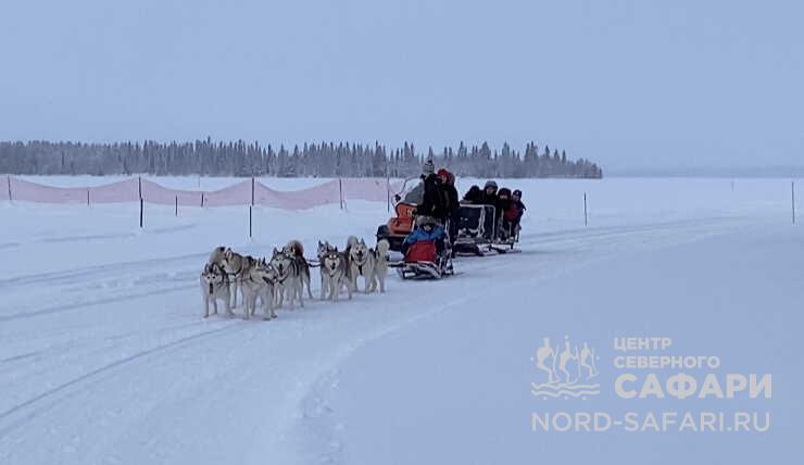 10.00 — сбор в административном здании б/о «Лесная», экипировка, инструктаж. Сафари по ледяным просторам озера Имандра. Мчимся в хаски-парк.