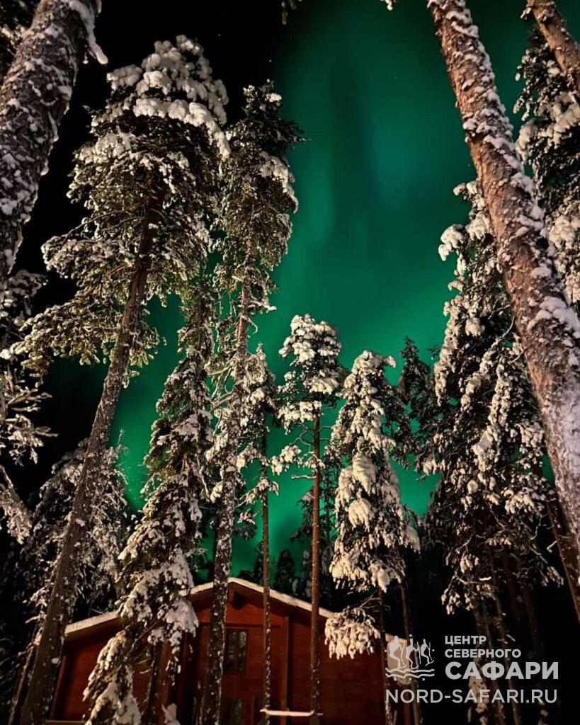 Наши гости поймали редкое и идеальное сочетание: днём — яркое солнце и искрящийся снег, а ночью — северное сияние во всё небо. Тот самый момент, когда Север показывает максимум.Хотите так же? Присоединяйтесь