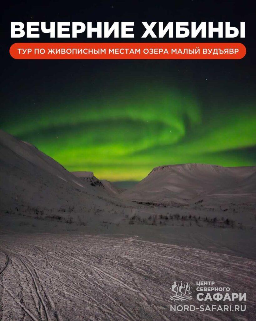 Снегоходный тур «Вечерние Хибины» по живописным окрестностям озера Малый Вудъявр — для тех, кто хочет увидеть Хибины с другой стороны.