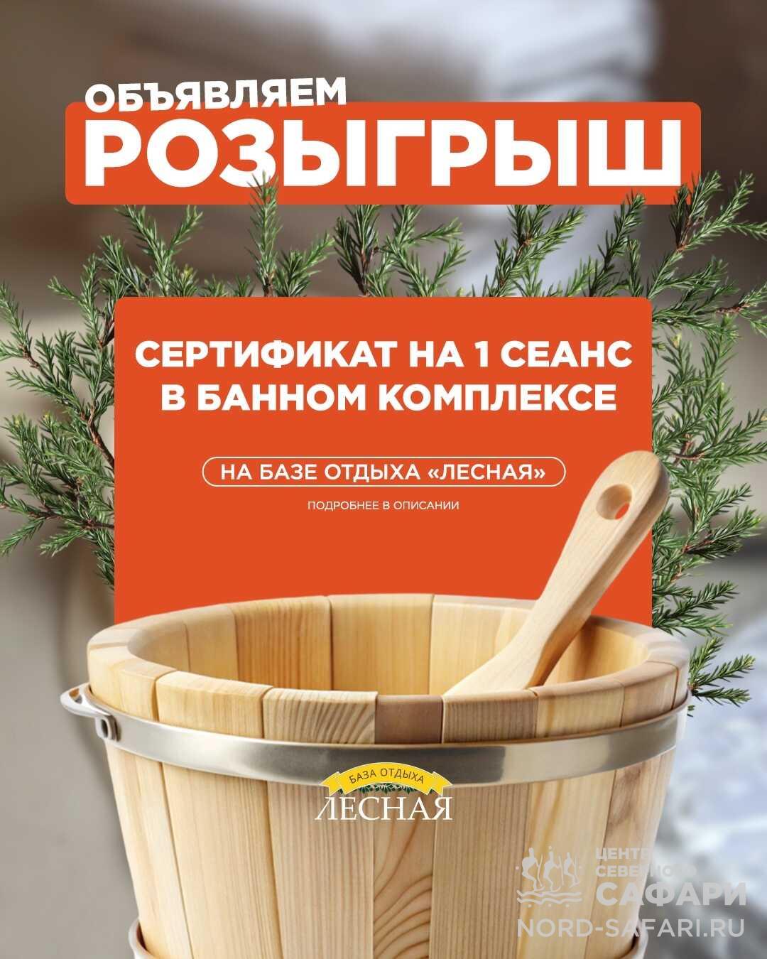 Подарим сертификат на 1 сеанс в банном комплексе на нашей базе отдыха