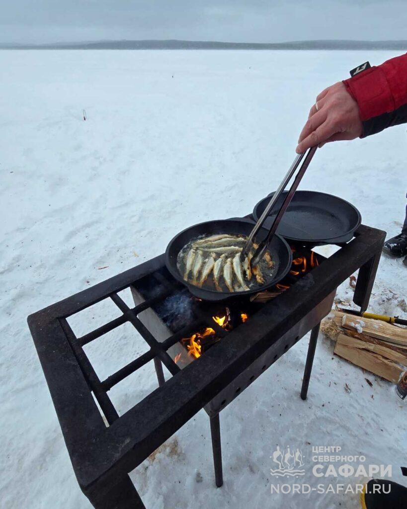 На время тура вы разместитесь в центре рыбалки и туризма «Карельские пороги» — уютные номера, тепло, тишина природы и настоящее северное гостеприимство. Вас ждут: драйвовые маршруты на снегоходах по просторам Кольского полуострова, отдых в русской бане с парением дубовыми вениками, подлёдная рыбалка с приготовлением улова прямо на костре и знакомство с северными оленями