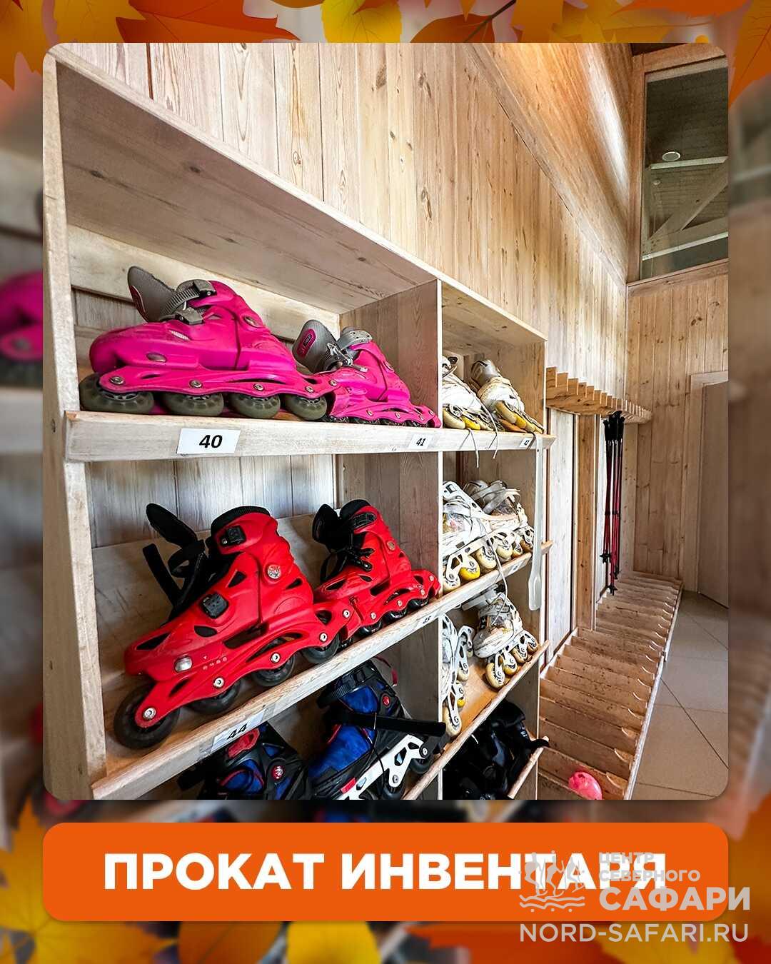 На территории базы: просторные беседки-барбекю, банный комплекс с тёплым бассейном и сауной, детская и спортивная площадки, мастер-классы по субботам. В прокате: велосипеды, веломобили, самокаты, ролики, палки для скандинавской ходьбы.