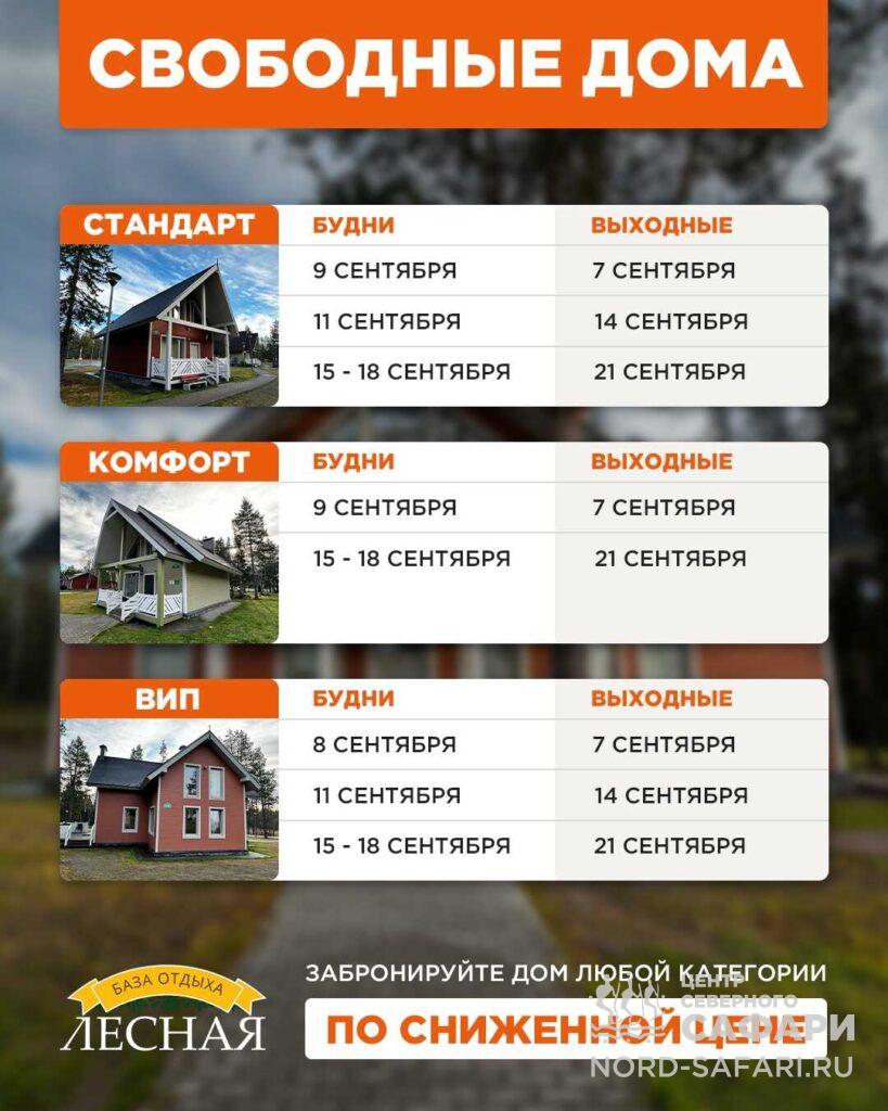 СВОБОДНЫЕ ДОМА НА БАЗЕ ОТДЫХА «ЛЕСНАЯ» НА БЛИЖАЙШЕЕ ВРЕМЯ!