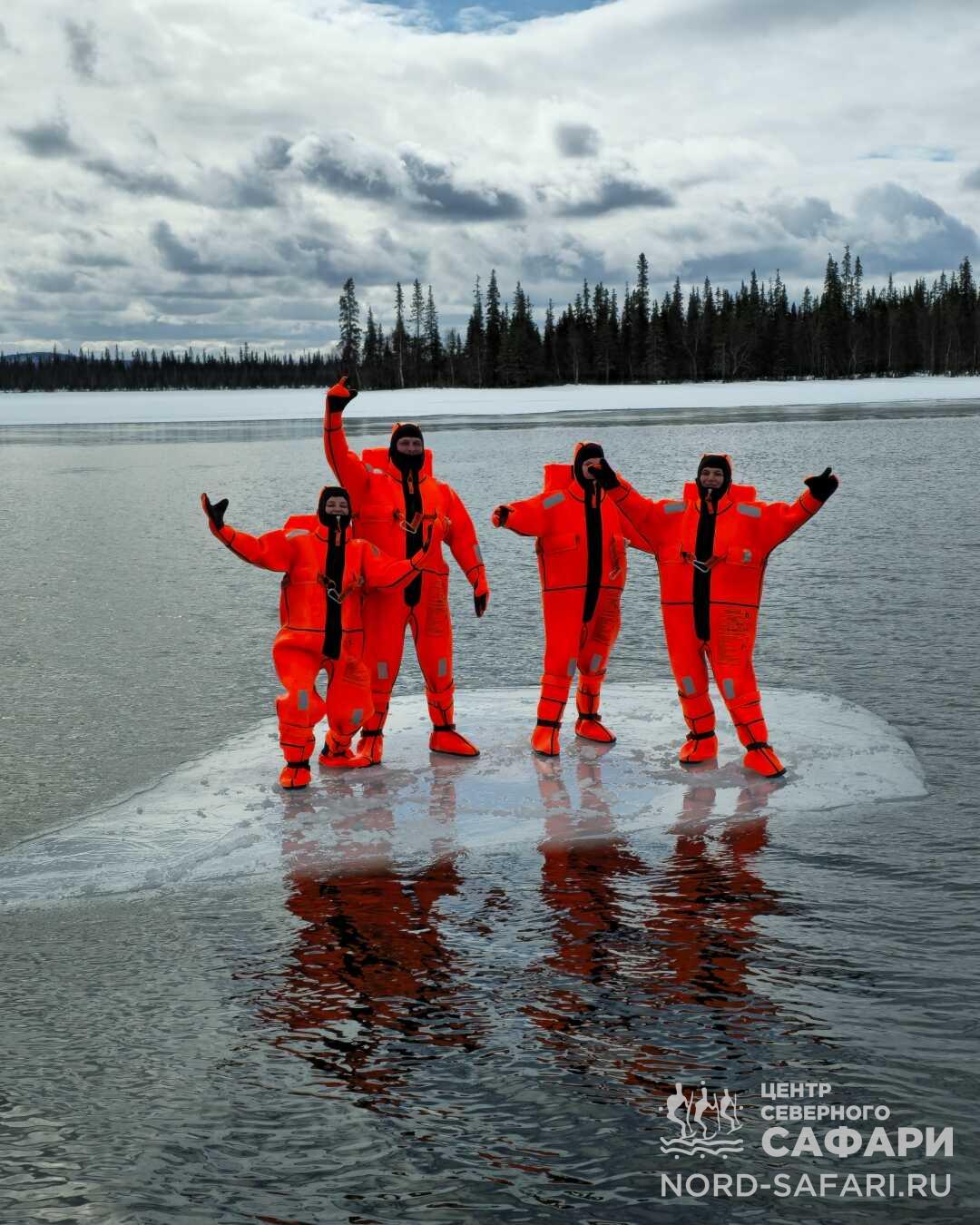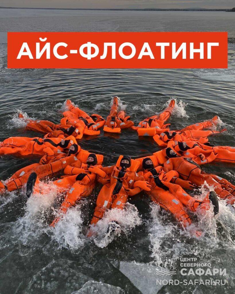 Специальные тёплые костюмы дарят комфорт и безопасность, позволяя просто лежать на воде, наблюдать зимний пейзаж и чувствовать, как уходит вся суета прошедшего года.